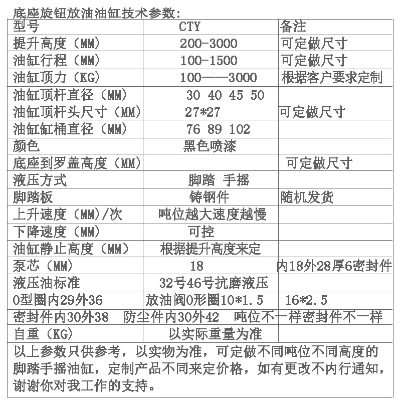 1吨底座放油油缸 手动液压单项油泵 千斤顶 脚踏手摇液压供油泵